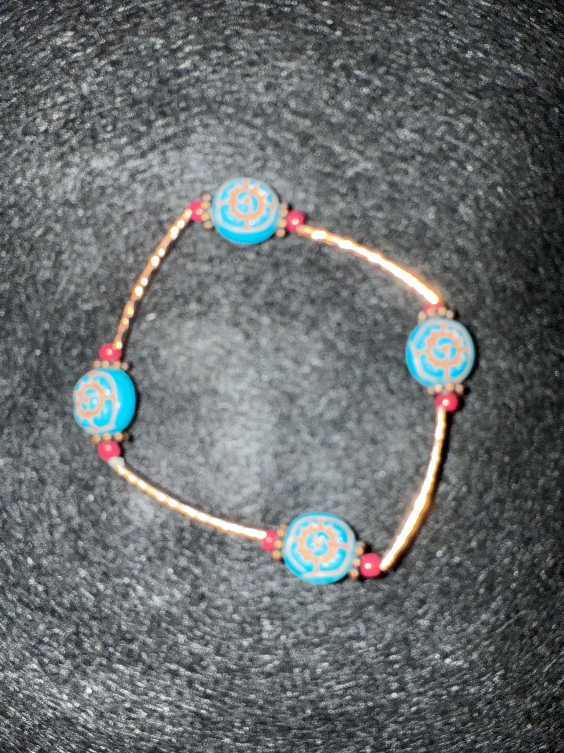 Turquoise flower blessing bracelet. Comes with silver or rose gold.